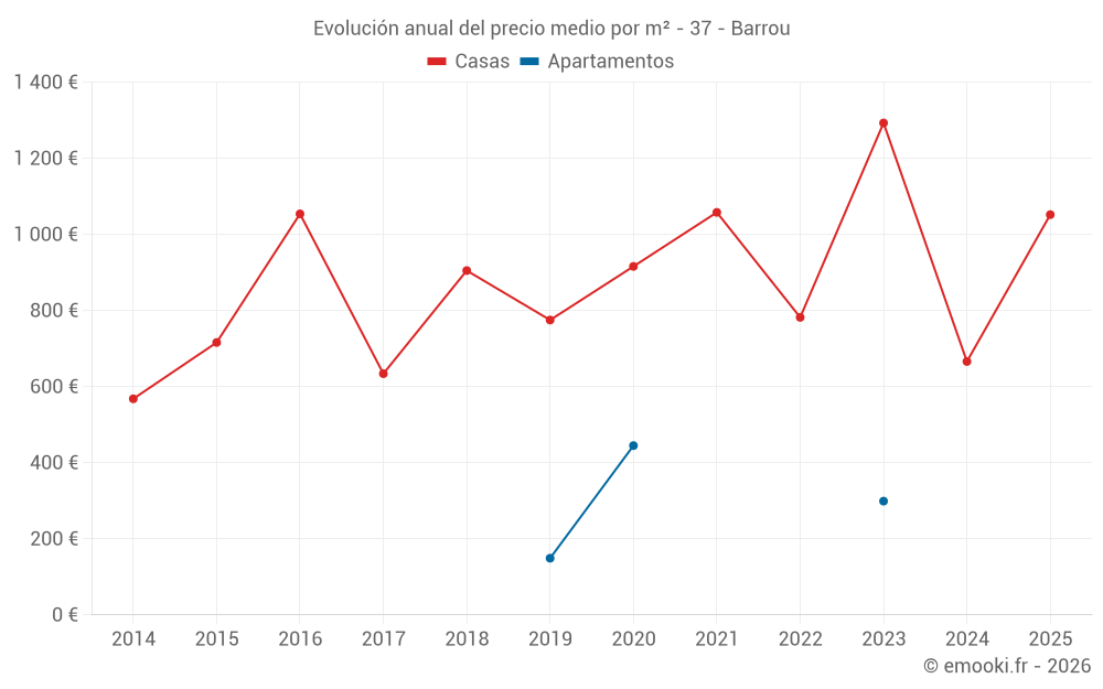 ¿Cuál es el precio por m2 de las casas en Barrou?