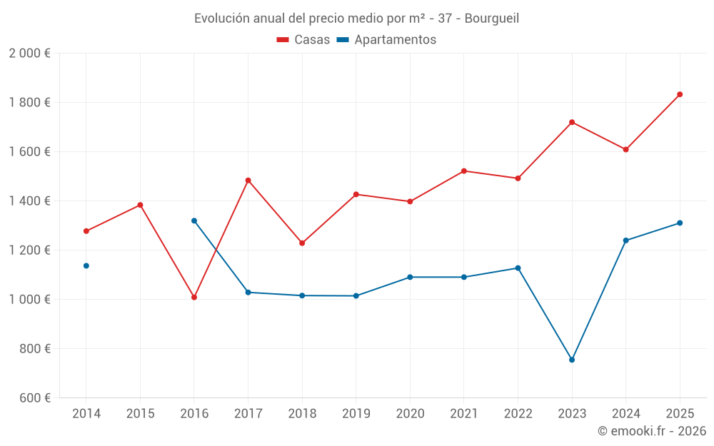 ¿Cuál es el precio por m2 de los apartamentos en Bourgueil?