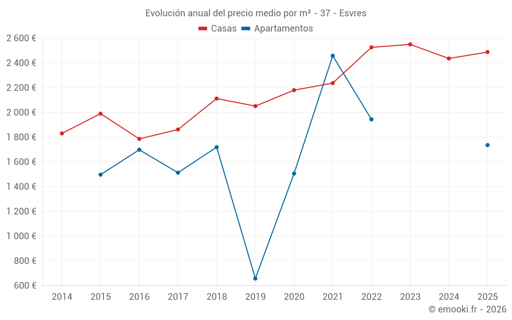 ¿Cuál es el precio por m2 de las casas en Esvres?