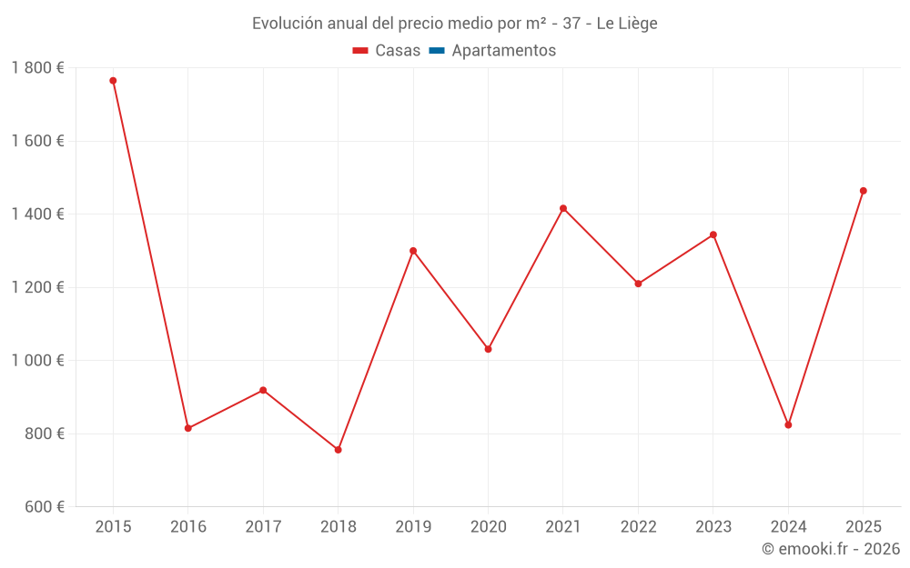 Evolución del precio medio por m² de las casas