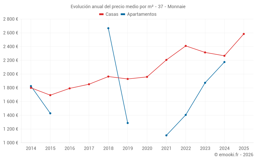 ¿Cuál es el precio por m2 de las casas en Monnaie?