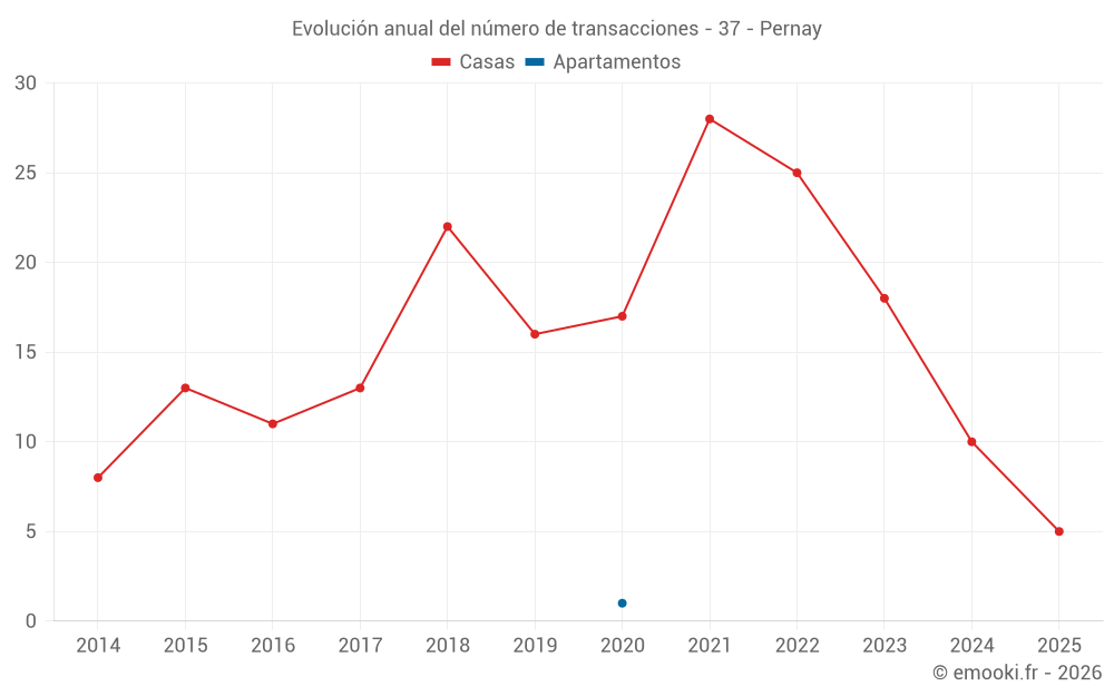 El precio mediano en las 24 transacciones de casas de los últimos 24 meses en la comuna de Pernay fue de 2 284 € por metro cuadrado para un valor patrimonial medio de 242 500 €. Durante este período el 60% de las transacciones estuvieron entre 1 972 y 2 977 € por metro cuadrado (del 2º al 8º decil).
