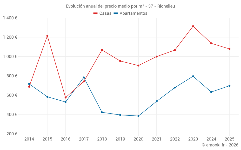 ¿Cuál es el precio por m2 de las casas en Richelieu?