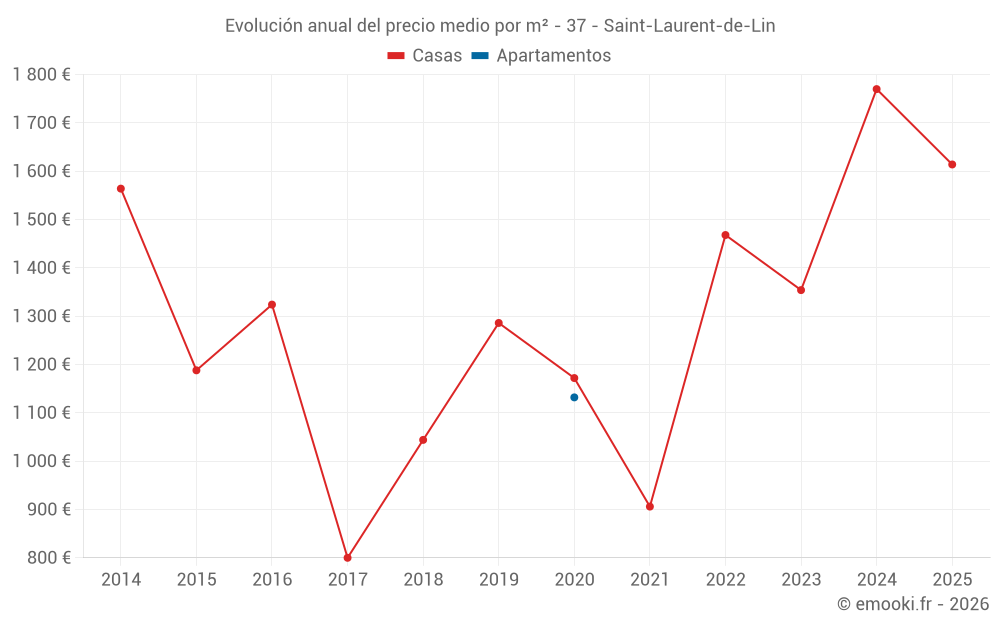 Evolución del precio medio por m² de las casas
