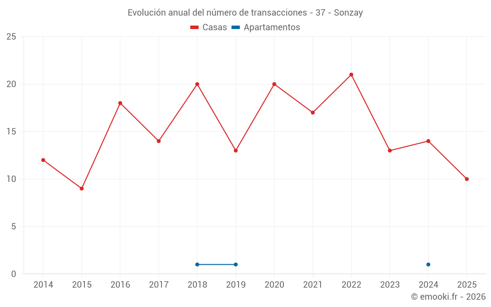 El precio mediano en las 21 transacciones de casas de los últimos 12 meses en la comuna de Sonzay fue de 1 579 € por metro cuadrado para un valor patrimonial medio de 157 000 €. Durante este período el 60% de las transacciones estuvieron entre 1 087 y 2 320 € por metro cuadrado (del 2º al 8º decil).