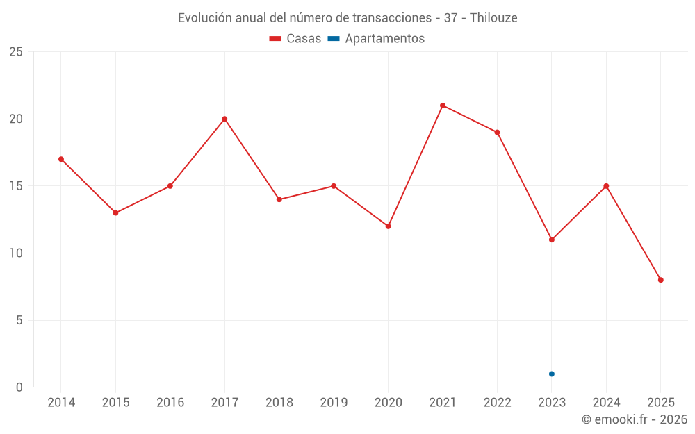 El precio mediano en las 27 transacciones de casas de los últimos 24 meses en la comuna de Thilouze fue de 1 993 € por metro cuadrado para un valor patrimonial medio de 226 250 €. Durante este período el 60% de las transacciones estuvieron entre 1 309 y 2 236 € por metro cuadrado (del 2º al 8º decil).