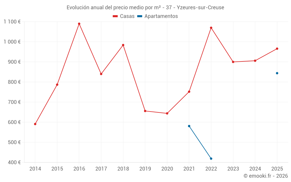 ¿Cuál es el precio por m2 de las casas en Yzeures-sur-Creuse?