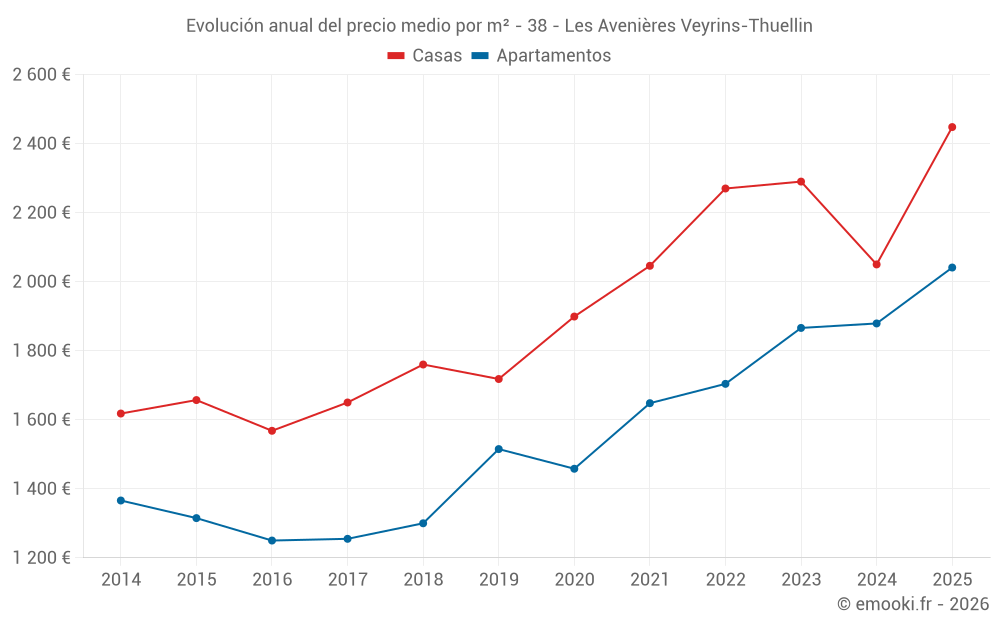 ¿Cuál es el precio por m2 de las casas en Les Avenières Veyrins-Thuellin?