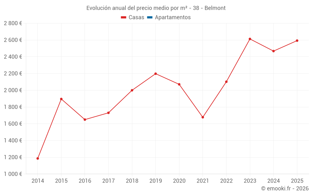 Evolución del precio medio por m² de las casas