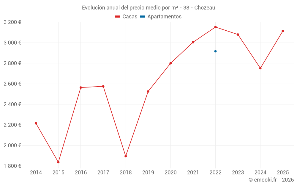 ¿Cuál es el precio por m2 de las casas en Chozeau?