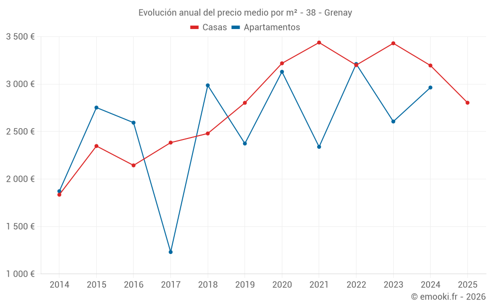 ¿Cuál es el precio por m2 de las casas en Grenay?