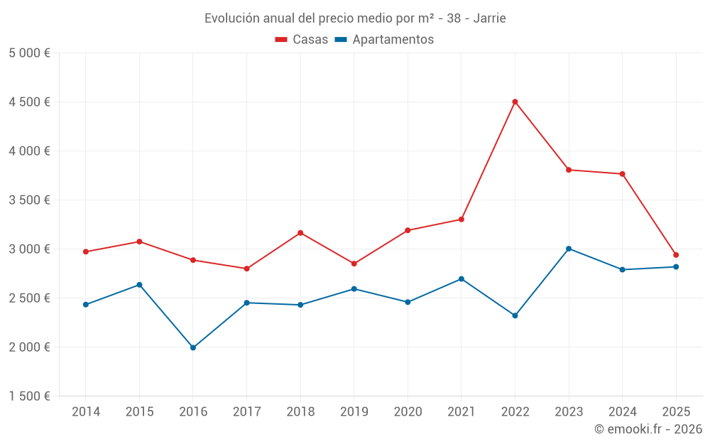 ¿Cuál es el precio por m2 de las casas en Jarrie?
