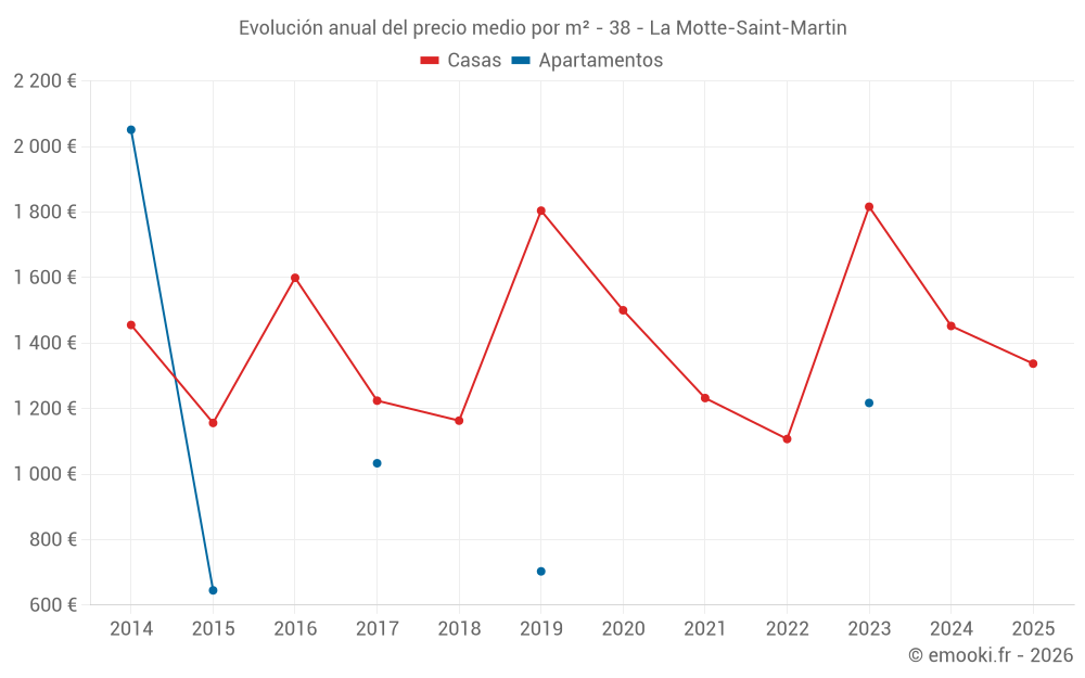 Evolución del precio medio por m² de las casas