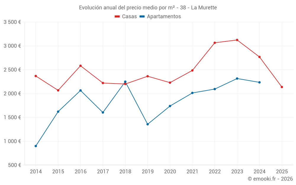 El precio mediano en las 25 transacciones de casas de los últimos 24 meses en la comuna de La Murette fue de 2 769 € por metro cuadrado para un valor patrimonial medio de 267 000 €. Durante este período el 60% de las transacciones estuvieron entre 2 027 y 3 887 € por metro cuadrado (del 2º al 8º decil).