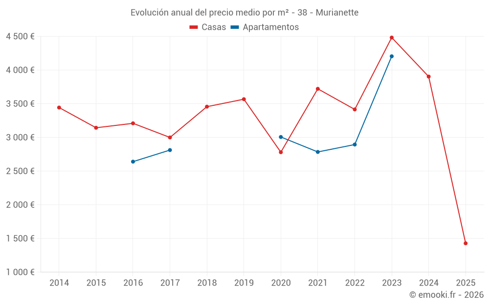 Evolución del precio medio por m² de las casas