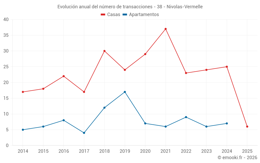 El precio mediano en las 20 transacciones de casas de los últimos 12 meses en la comuna de Nivolas-Vermelle fue de 2 732 € por metro cuadrado para un valor patrimonial medio de 256 900 €. Durante este período el 60% de las transacciones estuvieron entre 1 851 y 3 236 € por metro cuadrado (del 2º al 8º decil).