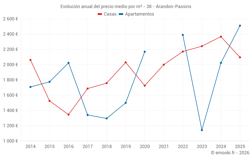 ¿Cuál es el precio por m2 de las casas en Arandon-Passins?