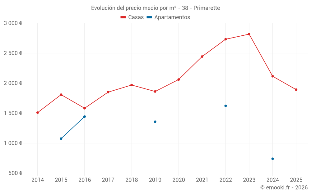 Mapa de precios de la vivienda en la comuna de Primarette, elija una sección para ver las transacciones por parcela.