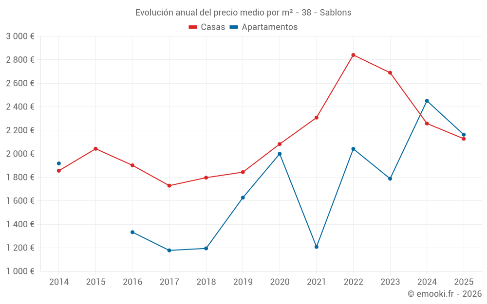 Evolución del precio medio por m² de las casas