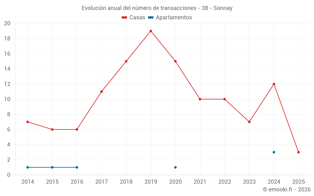 El precio mediano en las 19 transacciones de casas de los últimos 24 meses en la comuna de Sonnay fue de 2 198 € por metro cuadrado para un valor patrimonial medio de 204 250 €. Durante este período el 60% de las transacciones estuvieron entre 1 300 y 2 578 € por metro cuadrado (del 2º al 8º decil).