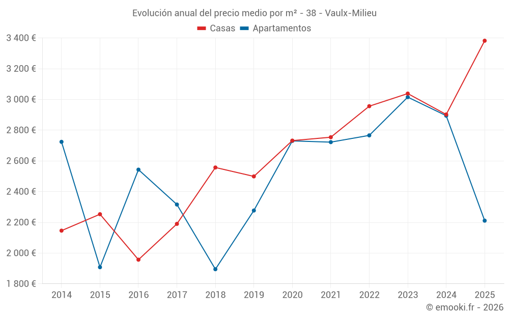 ¿Cuál es el precio por m2 de las casas en Vaulx-Milieu?