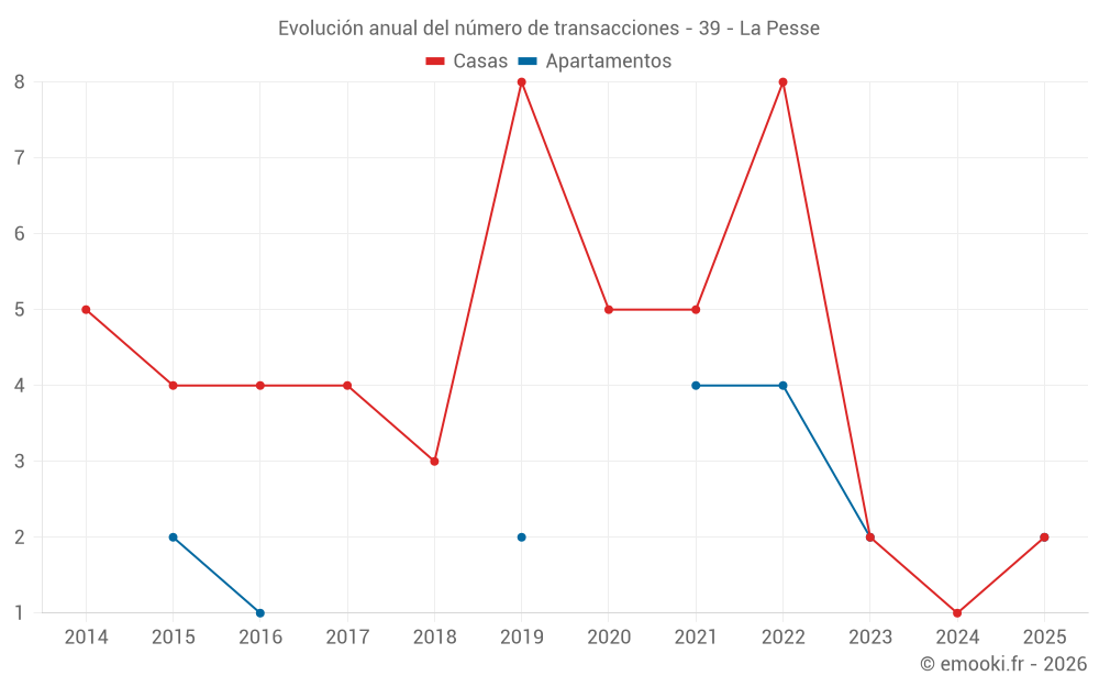 Mapa de precios de la vivienda en la comuna de La Pesse, elija una sección para ver las transacciones por parcela.