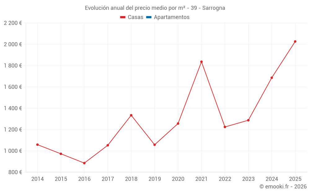 Evolución del precio medio por m² de las casas