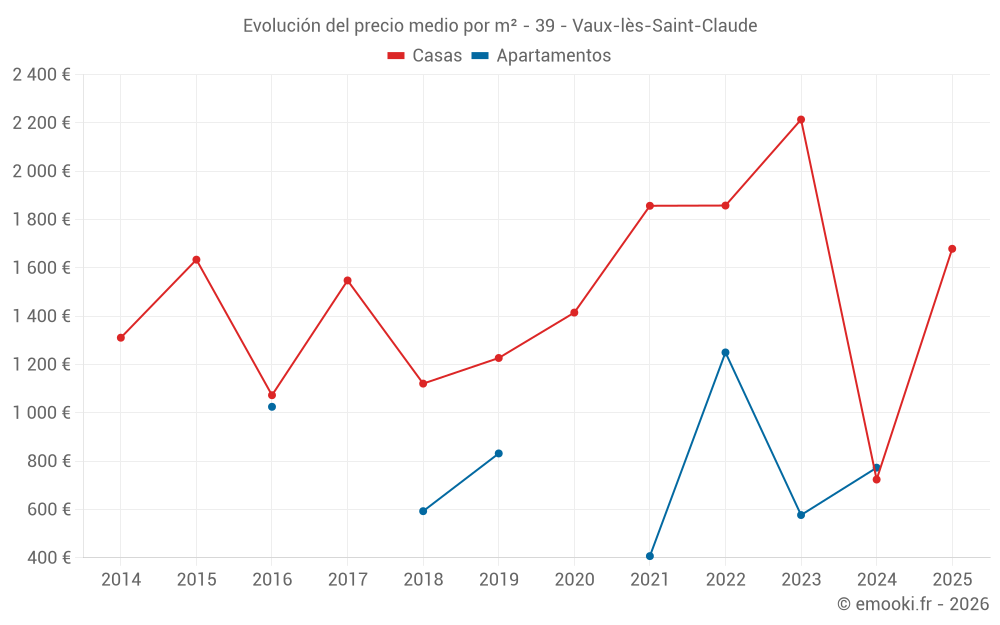 Mapa de precios de la vivienda en la comuna de Vaux-lès-Saint-Claude, elija una sección para ver las transacciones por parcela.