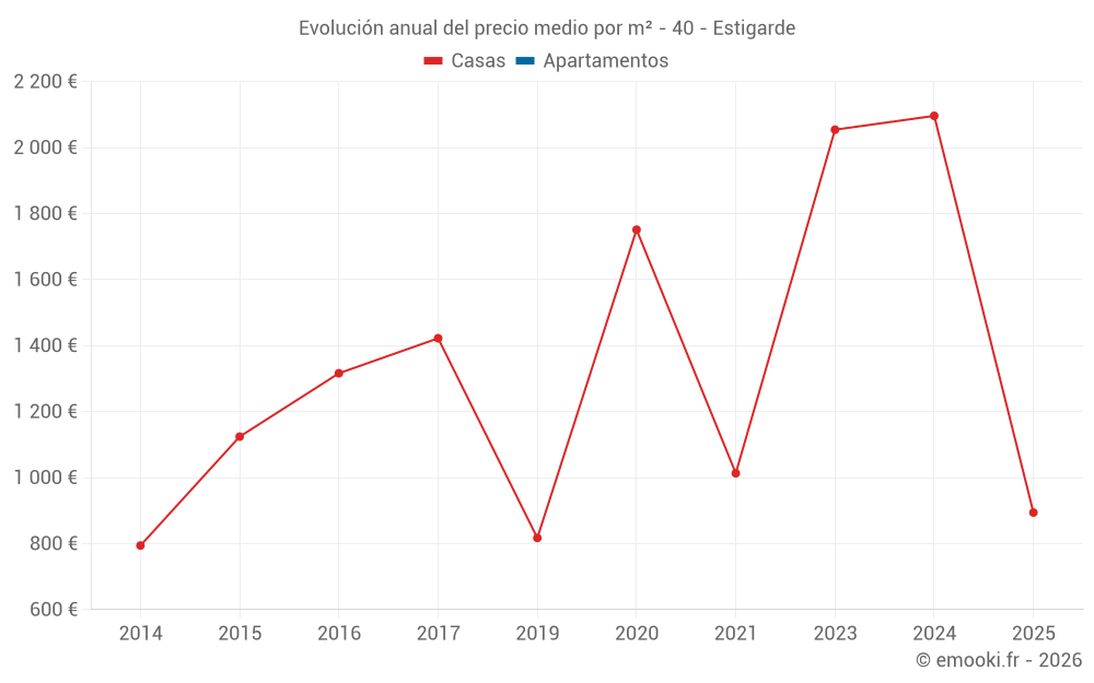 Mapa de precios de la vivienda en la comuna de Estigarde, elija una sección para ver las transacciones por parcela.