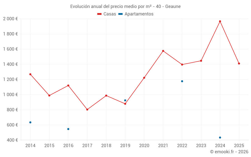 Mapa de precios de la vivienda en la comuna de Geaune, elija una sección para ver las transacciones por parcela.