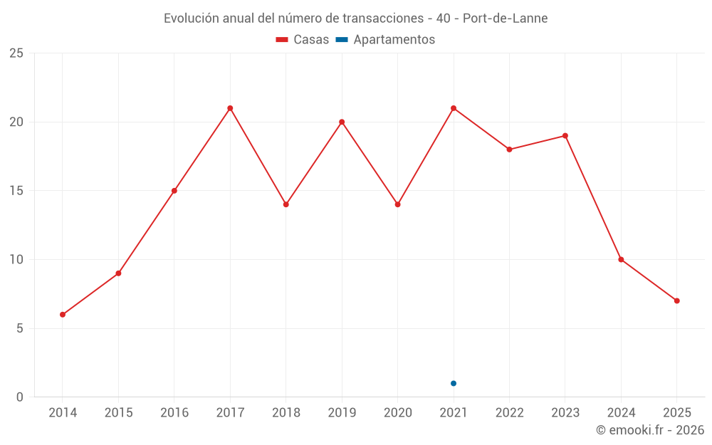 El precio mediano en las 29 transacciones de casas de los últimos 24 meses en la comuna de Port-de-Lanne fue de 2 675 € por metro cuadrado para un valor patrimonial medio de 262 000 €. Durante este período el 60% de las transacciones estuvieron entre 1 565 y 3 359 € por metro cuadrado (del 2º al 8º decil).