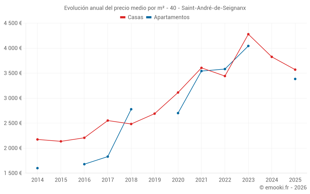 ¿Cuál es el precio por m2 de las casas en Saint-André-de-Seignanx?