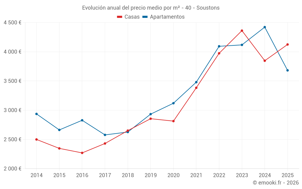 ¿Cuál es el precio por m2 de las casas en Soustons?