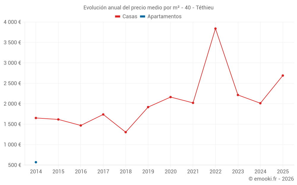 Mapa de precios de la vivienda en la comuna de Téthieu, elija una sección para ver las transacciones por parcela.