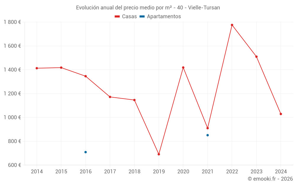 Mapa de precios de la vivienda en la comuna de Vielle-Tursan, elija una sección para ver las transacciones por parcela.
