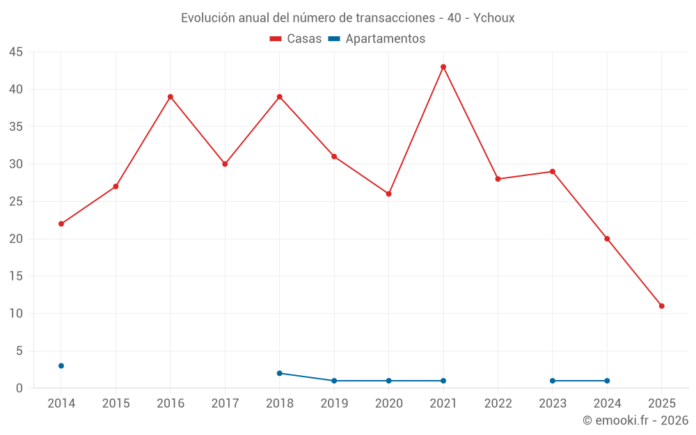 El precio mediano en las 24 transacciones de casas de los últimos 12 meses en la comuna de Ychoux fue de 2 670 € por metro cuadrado para un valor patrimonial medio de 227 000 €. Durante este período el 60% de las transacciones estuvieron entre 2 267 y 3 106 € por metro cuadrado (del 2º al 8º decil).