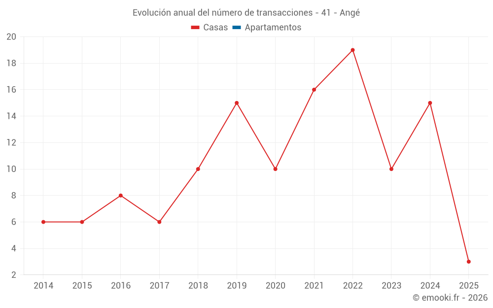 El precio mediano en las 22 transacciones de casas de los últimos 24 meses en la comuna de Angé fue de 1 598 € por metro cuadrado para un valor patrimonial medio de 152 000 €. Durante este período el 60% de las transacciones estuvieron entre 1 047 y 2 081 € por metro cuadrado (del 2º al 8º decil).