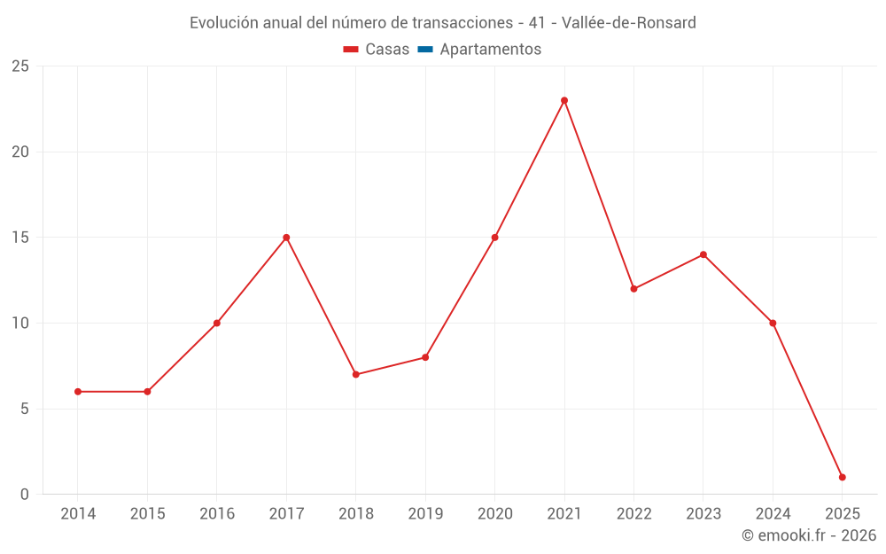 El precio mediano en las 21 transacciones de casas de los últimos 24 meses en la comuna de Vallée-de-Ronsard fue de 1 055 € por metro cuadrado para un valor patrimonial medio de 80 000 €. Durante este período el 60% de las transacciones estuvieron entre 550 y 1 419 € por metro cuadrado (del 2º al 8º decil).