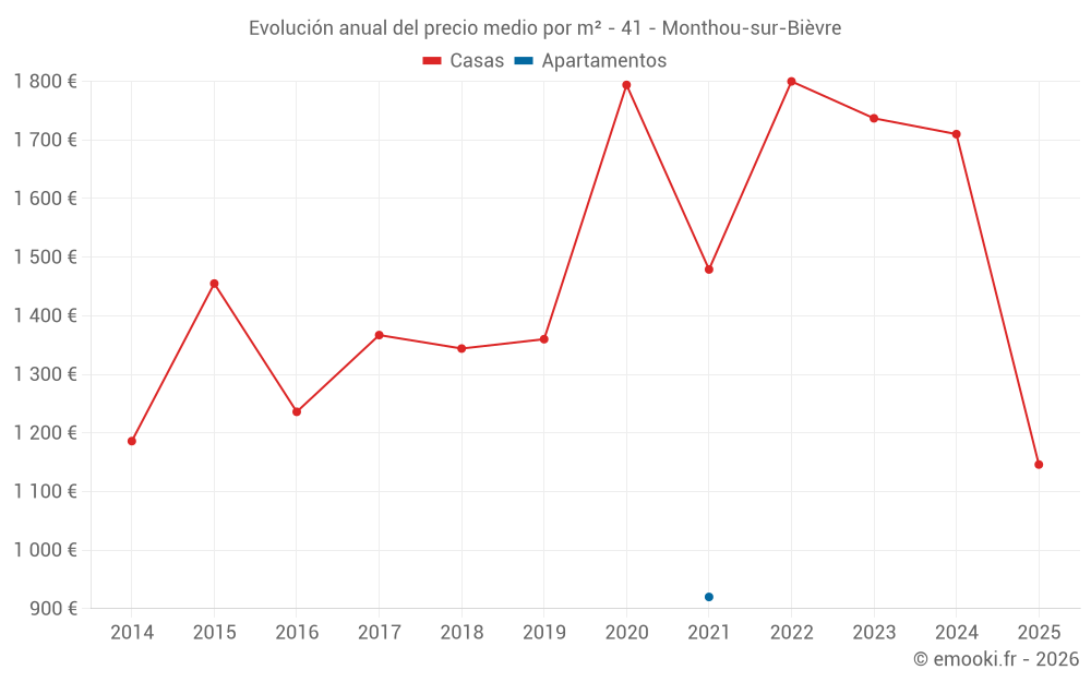 ¿Cuál es el precio por m2 de las casas en Monthou-sur-Bièvre?