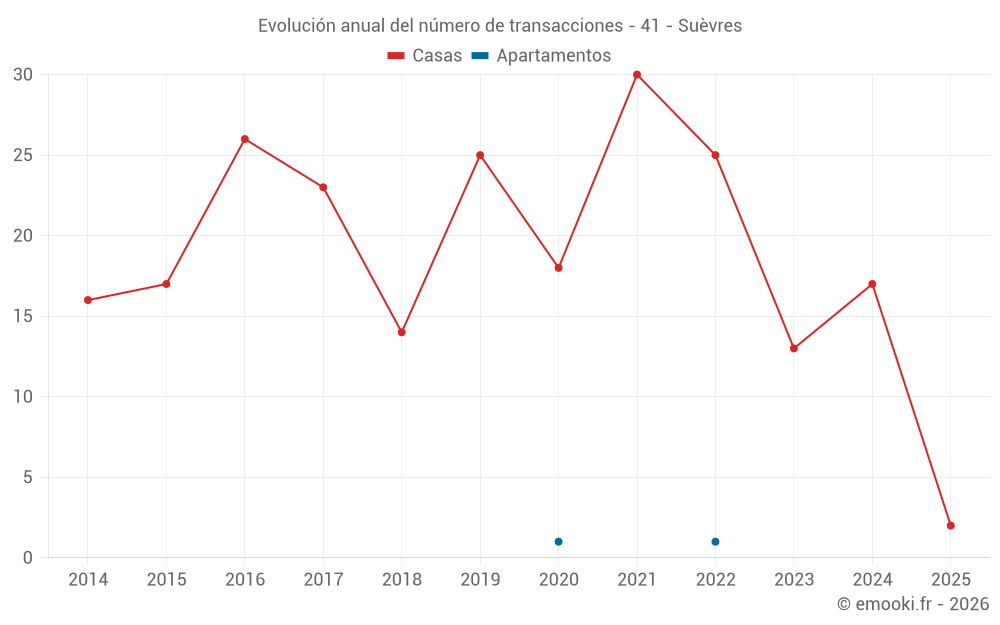 El precio mediano en las 25 transacciones de casas de los últimos 24 meses en la comuna de Suèvres fue de 1 500 € por metro cuadrado para un valor patrimonial medio de 99 900 €. Durante este período el 60% de las transacciones estuvieron entre 664 y 1 806 € por metro cuadrado (del 2º al 8º decil).