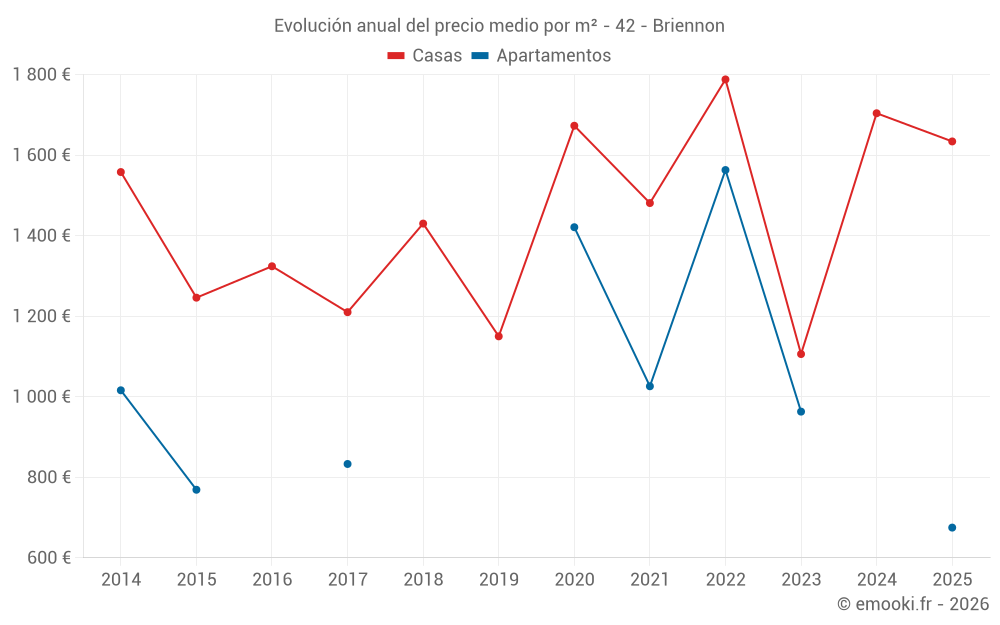 ¿Cuál es el precio por m2 de las casas en Briennon?
