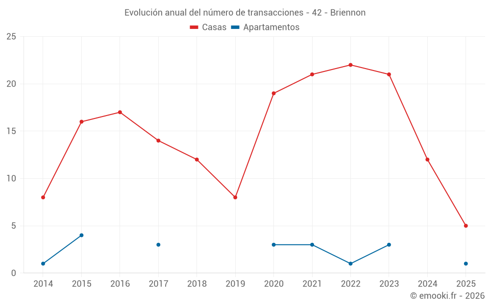 El precio mediano en las 30 transacciones de casas de los últimos 24 meses en la comuna de Briennon fue de 1 452 € por metro cuadrado para un valor patrimonial medio de 129 350 €. Durante este período el 60% de las transacciones estuvieron entre 940 y 2 128 € por metro cuadrado (del 2º al 8º decil).