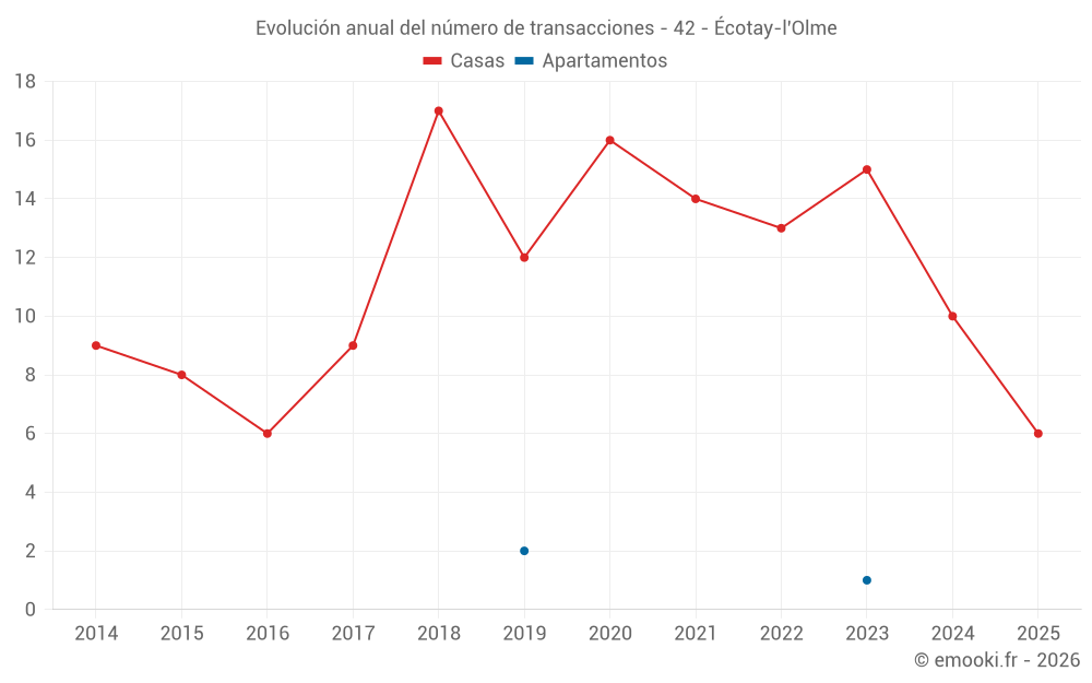 El precio mediano en las 23 transacciones de casas de los últimos 24 meses en la comuna de Écotay-l'Olme fue de 2 570 € por metro cuadrado para un valor patrimonial medio de 283 700 €. Durante este período el 60% de las transacciones estuvieron entre 1 766 y 2 943 € por metro cuadrado (del 2º al 8º decil).