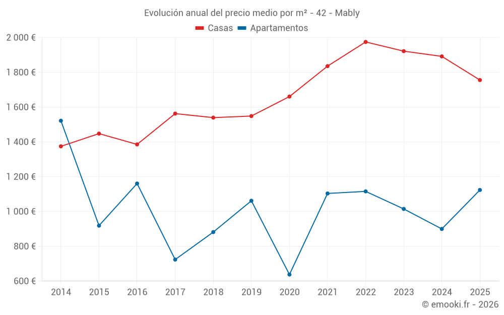 ¿Cuál es el precio por m2 de las casas en Mably?