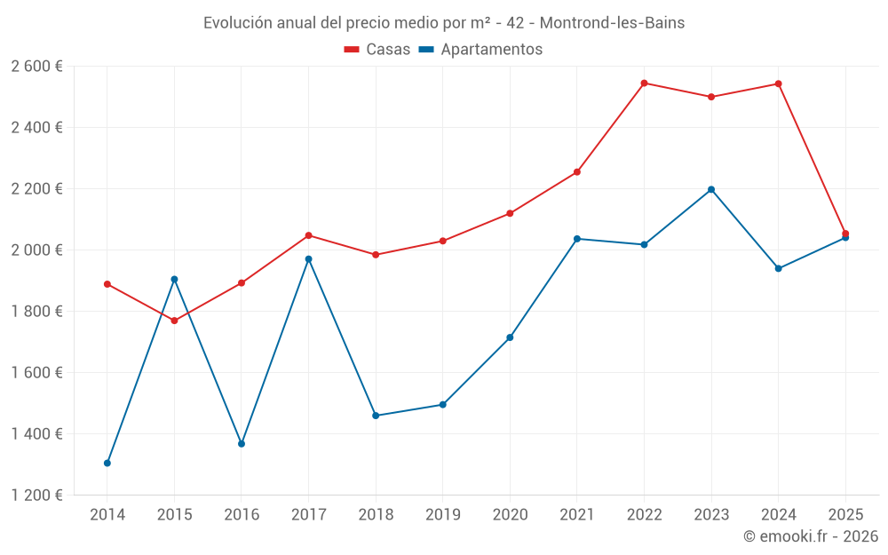 ¿Cuál es el precio por m2 de las casas en Montrond-les-Bains?