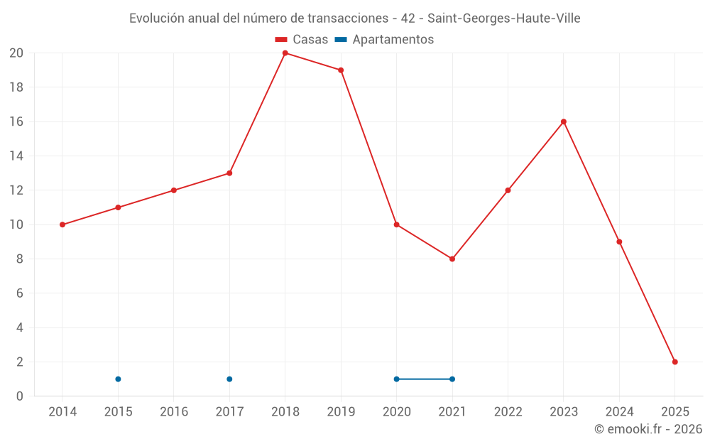 El precio mediano en las 18 transacciones de casas de los últimos 24 meses en la comuna de Saint-Georges-Haute-Ville fue de 2 240 € por metro cuadrado para un valor patrimonial medio de 232 950 €. Durante este período el 60% de las transacciones estuvieron entre 1 917 y 2 760 € por metro cuadrado (del 2º al 8º decil).