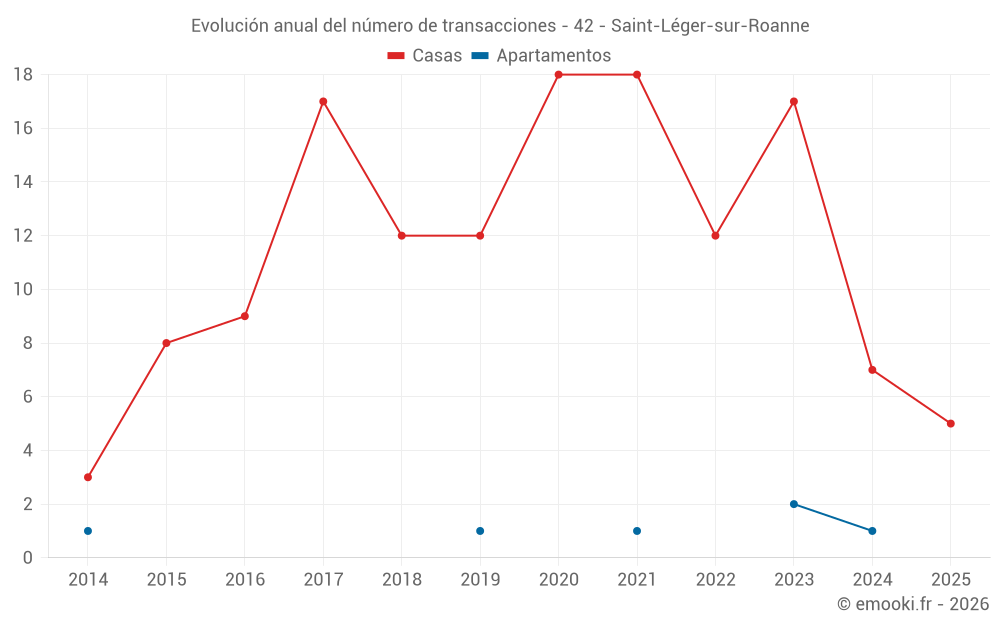 El precio mediano en las 19 transacciones de casas de los últimos 24 meses en la comuna de Saint-Léger-sur-Roanne fue de 2 177 € por metro cuadrado para un valor patrimonial medio de 205 000 €. Durante este período el 60% de las transacciones estuvieron entre 1 632 y 2 495 € por metro cuadrado (del 2º al 8º decil).