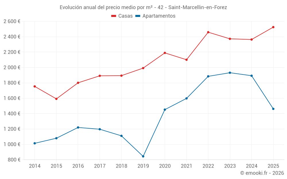 ¿Cuál es el precio por m2 de las casas en Saint-Marcellin-en-Forez?
