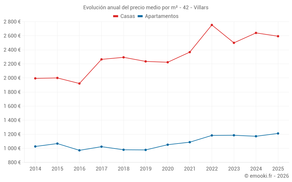 El precio mediano en las 46 transacciones de apartamentos de los últimos 12 meses en la comuna de Villars fue de 1 212 € por metro cuadrado para un valor patrimonial medio de 89 250 €. Durante este período el 60% de las transacciones estuvieron entre 1 028 y 1 413 € por metro cuadrado (del 2º al 8º decil).
