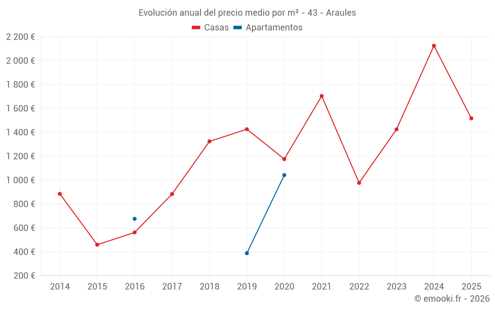 Evolución del precio medio por m² de las casas